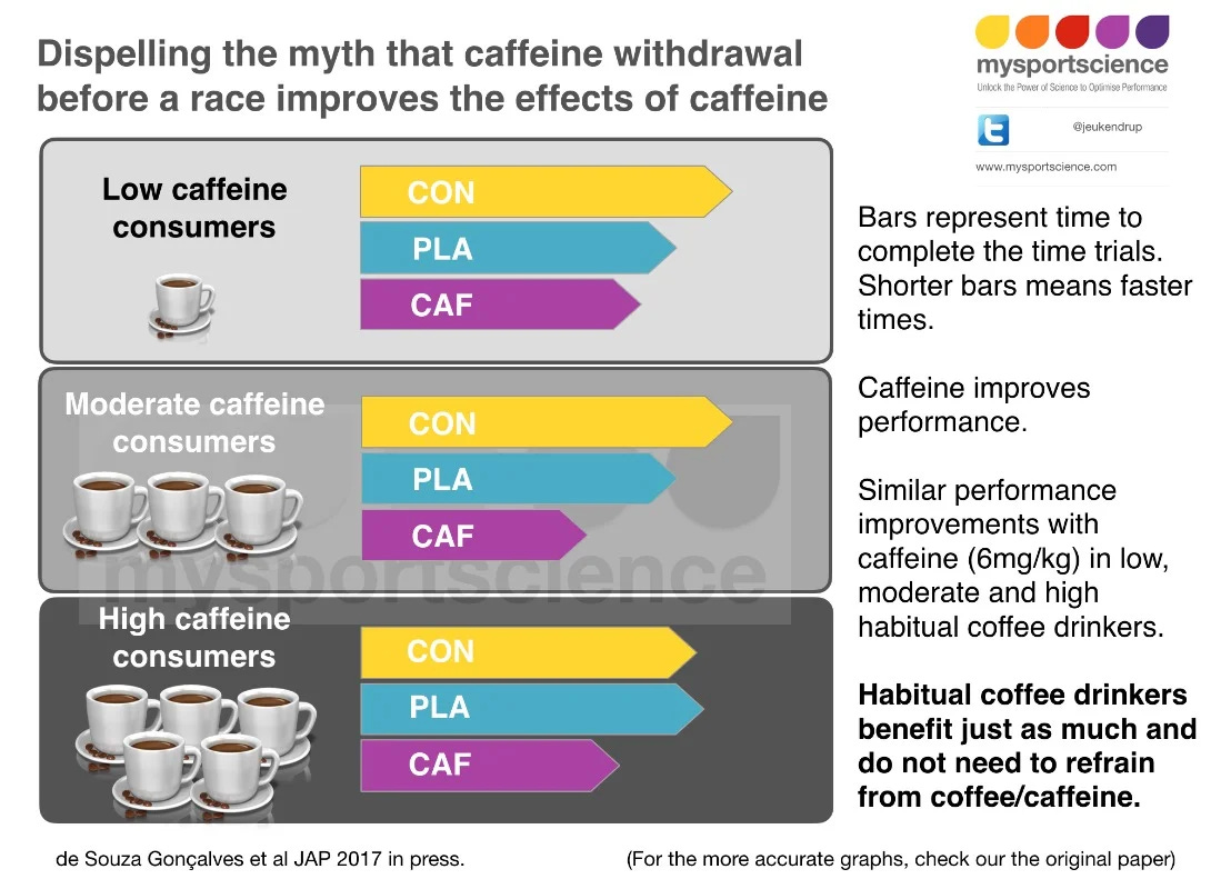 This has led to the theory that for a regular caffeine consumer to experience a performance-enhancing benefit of caffeine, they need to abstain from caffeine for a few days to a week.