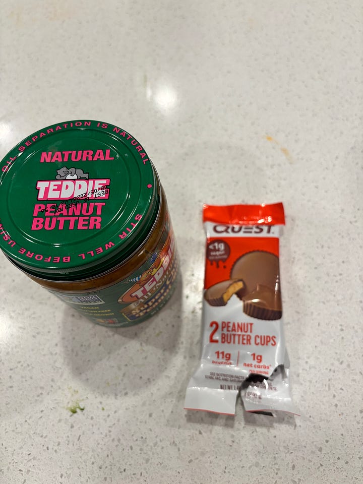 Dessert: Quest protein peanut butter cups (extra peanut butter)