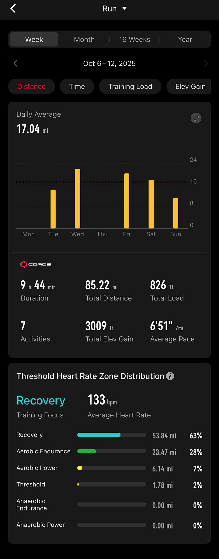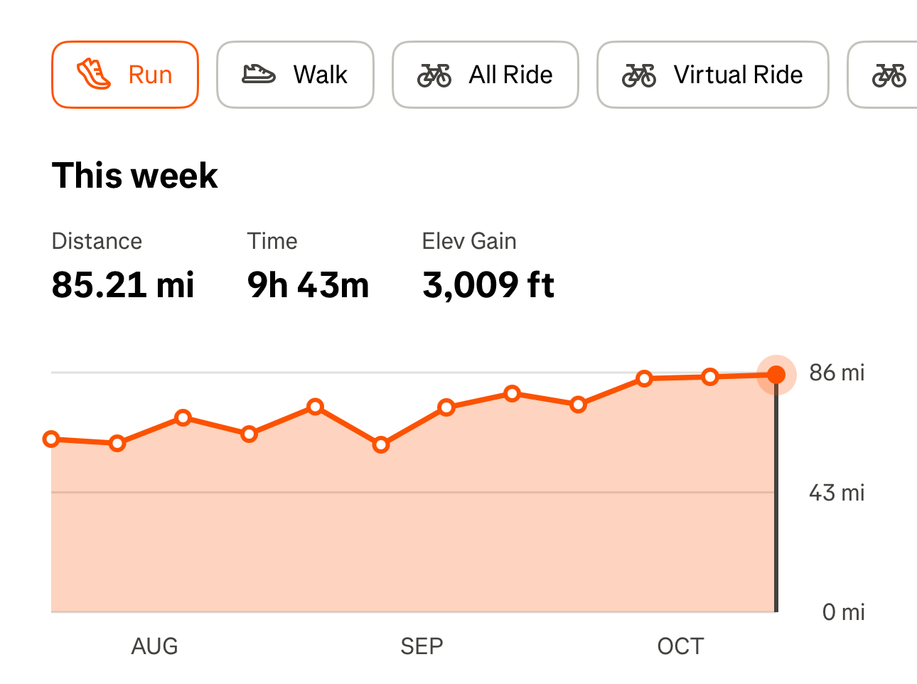 For the third week in a row, I logged 85 miles on just 5 days of running. I logged just a few 80+ mile weeks during my training for the Boston Marathon, and this is the first time in nearly a decade I’ve been so consistent (and healthy) with mileage. Running is just a lot of fun right now, and there are a few days each week when I find it hard to hold back. That being said, I’m still cautious and moderating my volume and intensity safely. I’m in “uncharted territory,” and my main priority is still to remain uninjured. I’m writing this post on Sunday night, and after watching the Chicago Marathon this morning (where Connor Mantz set a NEW American Record), I can’t help but be fired up for the next week of training.