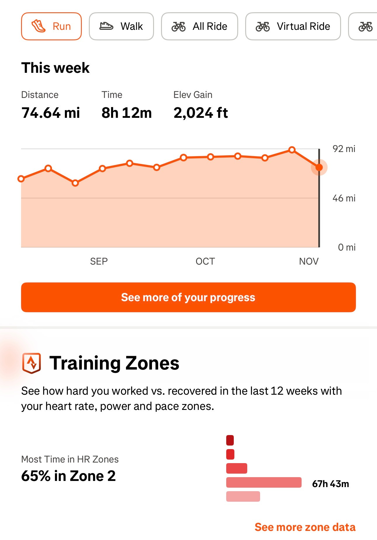 This week marked week 7 of 12 of my official build toward the California International Marathon (CIM) on December 7, 2025. You can find previous week’s here: