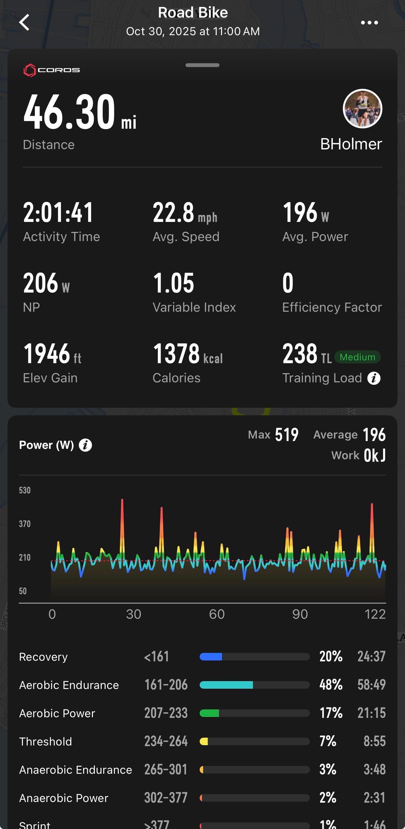 Cycling: 5 hours 11 minutes (2 rides + some commuting to and from the gym)