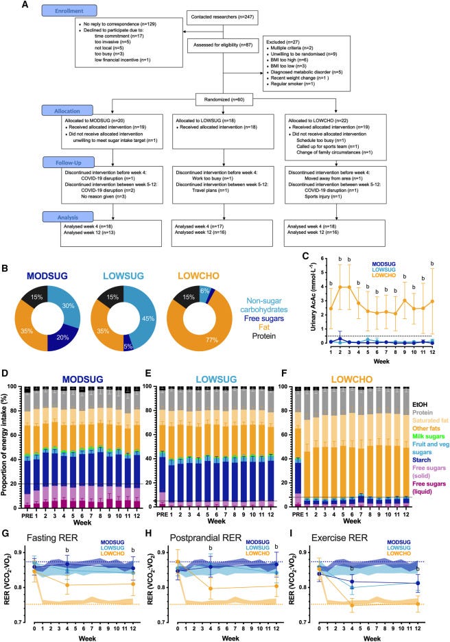 Overall, the results show that despite both sugar restriction and carbohydrate restriction (a ketogenic diet) reducing free-living energy intake and reducing body mass, these diets have divergent effects on metabolism and cardiometabolic biomarkers without affecting physical activity.