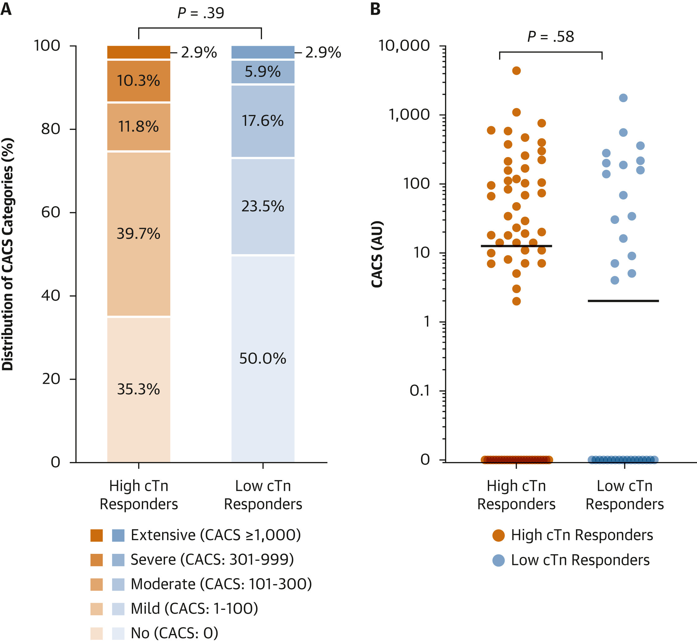 What about the relationship between post-exercise increases in troponin and CAC scores? It turns out, there is none. While resting levels of hs-cTnT were correlated with CAC scores, post-exercise levels and the pre- to post-exercise change of both hs-cTnT and hs-cTnI were not—athletes with larger changes in post-exercise troponin did not have apparently higher levels of heart disease.