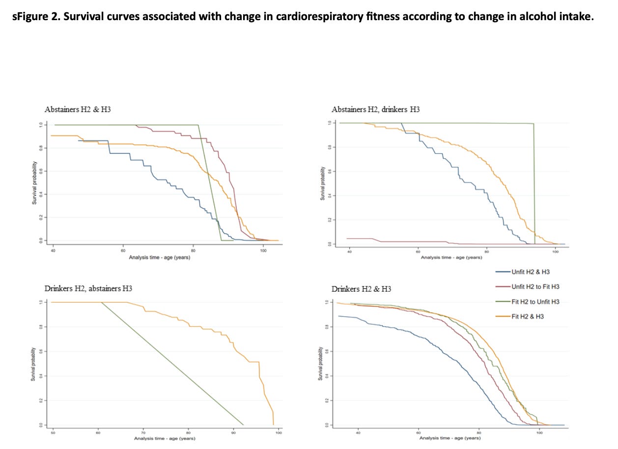 They also report a somewhat counterintuitive finding: even people who improved their fitness (unfit → fit) could show elevated risk in certain alcohol-change categories (e.g., abstainer → drinker or consistent drinkers), which likely reflects the reality that being unfit at baseline can be a marker of prior risk, illness, or unfavorable physiology that isn’t fully erased by gaining fitness later. Only persistent fitness maintenance over time provided “protection” against alcohol.