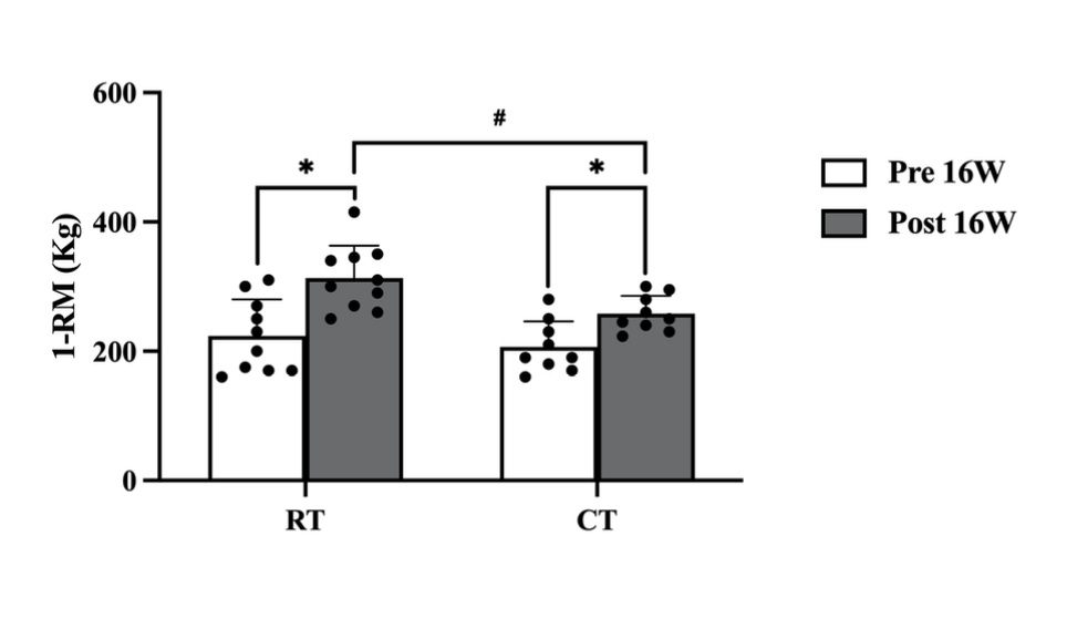 Resistance training-only: +194 lb/88 kg improvement in leg press 1-RM
